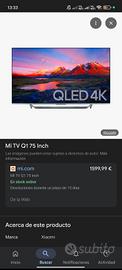 Vendo spettacolare Xiaomi Mi TV Q1 da 75 pollici, il modello di punta di Xiaomi che offre un'esperienza visiva di altissimo livello. La TV ha 2 anni di vita ma è pari al nuovo: è stata tenuta con cura maniacale, non presenta graffi, segni d’usura o difetti tecnici. Un vero affare per chi cerca un cinema in casa a un prezzo competitivo. Caratteristiche Tecniche d'Eccellenza: Risoluzione 4K Ultra HD: Immagini cristalline e ultra-definite. Frequenza 120Hz con MEMC: Fluidità estrema, fondamentale per il gaming (PS5/Xbox) e per godersi al meglio lo sport. Tecnologia HDR10+ & Dolby Vision: Contrasto dinamico e colori incredibilmente realistici. Pannello QLED con Local Dimming: Neri profondi e una gamma cromatica vastissima (tecnologia Quantum Dot). Sistema Android TV: Accesso rapido a Netflix, Prime Video, Disney+, YouTube e migliaia di app. Dettagli e Condizioni: Stato: Usata 2 anni, condizioni impeccabili (come nuova). Ancora sull mercato costa 1500/1600€ La vendo: 800€ Ritiro: Solo ritiro a mano a San Marco Venezia. Date le dimensioni, è necessario un mezzo adeguato (lunghezza circa 167 cm). Disponibile per qualsiasi prova tecnica e visione dal vivo prima dell'acquisto. Massima serietà, no scambi o offerte al ribasso.