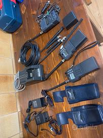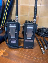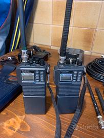Coppia Yaesu FT23R perfettamente funzionanti, una in perfette condizioni, una con segni di usura che non pregiudicano il funzionamento, complete di antenne (6) custodie, clip di aggancio cintura in acciaio, 2 trasformatori carica batteria più base caricabatteria da tavolo temporizzato con carica di mantenimeto a fine ciclo più ricetrasmittente Intek MR-8000 perfettamente funzionante senza batteria e completa di antenna. A disposizione per chiarimenti.