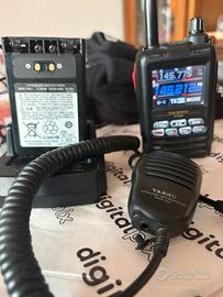 vendo bibanda Yaesu FT5D, con C4FM, doppia batteria, carica batteria esterna, microfono esterno Yaesu MH-34, completo di scatola e di due antenne