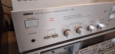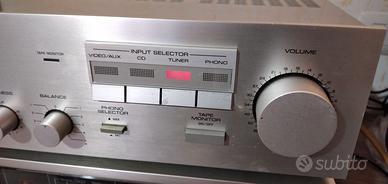 Amplificatore integrato vintage Yamaha A 420 anno 1985 perfettamente funzionante ed esteticamente in ottimo stato,mai riparato o manomesso,50+50 watt su 8 Ohm,ingresso giradischi MM/MC,ingressi Aux/Video,Cd e Tape,controlli di tono a scatti,loudness,uscita per due coppie di diffusori,dimensioni 43,5 x 11,2 x 32,7mm,peso 6,2 kg.