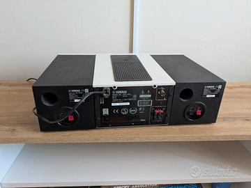 Vendo Stereo completo Yamaha CD RECEIVER CRX-040, formato da sintoamplificatore principale e due casse. La resa sonora è straordinaria, bassi strepitosi per le dimensioni, reggono benissimo il volume. Ottimo il sintoamplificatore, con Radio Dab, ipod, ingresso CD e portatile, Aux. Davvero completissimo, condizioni perfette. Ho il telecomando, istruzioni. spedisco senza problemi
