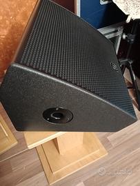 EURO 499,00 CADAUNO YANAHA DHR 12M MONITOR PROFESSIONALE ATTIVO COASSIALE NUOVO usato una sola volta completo di cover per il trasporto disponibile anche la COPPIA. Entrambi sono disponibili per essere visionati e provati, non spedisco, solo ritiro di persona. Sono a disposizione, non esitate a contattarmi rispondendo direttamente alla e-mail solo se veramente interessati. Non sono interessato a scambi o permute di materiale. Grazie. SPECIFICHE: Configurazione degli altoparlanti: woofer da 12" con bobina mobile da 2,5", tweeter da 1" con bobina mobile da 1,75" Potenza: amplificatori di potenza di classe D da 1000 W biamplificati a 2 vie (800 W LF + 200 W HF) Angolo di dispersione (nominale): 90° x 60° (H x V, ruotabile) Risposta in frequenza: 55 - 20000 Hz (-10 dB) SPL massimo: 129 dB Processore di segnale DSP con 2 preset e mixer integrato a 2 canali Canale 1: ingresso combo microfono/di linea XLR Canale 2: ingresso combo microfono/di linea XLR e 2 ingressi RCA, 1 uscita di linea Link XLR maschio Materiale della cassa: compensato Inclinazione come monitor da palco: 57° Flangia per diffusori da 35 mm Griglia dell'altoparlante su tutta la lunghezza Dimensioni (L x P x A): 500 x 454 x 343 mm Peso: 16,5 kg Colore: nero