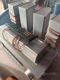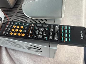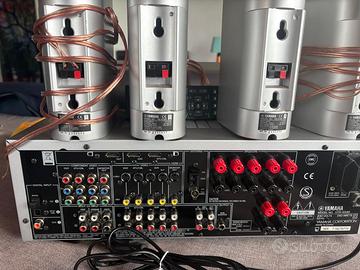 Prezzo stracciato per assenza del subwoofer (trovabile online a poche decine di euro) ! Sintoamplificatore (anche radio FM) e casse in ottime condizioni e perfettamente funzionanti , con telecomando originale . Specifiche Tecniche Principali: - Potenza di Uscita: 100W x 5 canali (8 ohm, 1 kHz, 0,9% THD). - Decodifica Audio: Supporta i formati Dolby Digital, DTS Digital Surround e Dolby Pro Logic II. - Conversione Audio: Utilizza un convertitore D/A a 192 kHz / 24 bit per una riproduzione sonora di alta qualità. - Ingressi Video: Include 3 ingressi video Component compatibili con segnali HDTV. - Audio Digitale: Dispone di 2 ingressi ottici e 1 ingresso coassiale. - Pulsanti SCENE: Quattro pulsanti programmabili per avviare rapidamente diverse configurazioni (DVD, TV, Radio, CD). - Espansione: Compatibile con basi per iPod e predisposto per la radio satellitare XM. - Programmi DSP: Include 8 programmi digitali (3 HiFi e 5 Cinema DSP) per personalizzare l'ambiente sonoro. - grande display con testi e simboli color ambra Manuali originali Yamaha (uso e tecnico) in formato digitale pdf disponibili . SOLO RITIRO A MANO