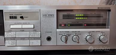 Yamaha K 340 deck a cassette del 1987 in livrea argento,usato e perfettamente funzionante,2 motori,2 testine,meccanica controllata da computer,Dolby B/C e Hx,selettore automatico del nastro (normale/cromo/metal),rec mute,ricerca del brano,livelli di ingresso separati,uscite/ingressi Rca e Din.La piastra è silenziosissima ed esteticamente in ottime condizioni.