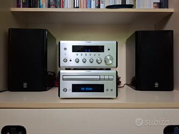 Yamaha, sintoamplificatore, lettore cd , telecomando e diffusori. Ottimo stato, funzionante perfettamente. Completo di tutto, scatole e documentazione.