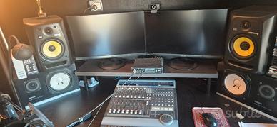 Coppia casse Yamaha NS10 + Amplificatore Pioneer A-307R entrambi PERFETTI e funzionanti, utilizzati per studio casalingo, unico proprietario, tenute in modo maniacale UTENTE ESPERTO NO SCAM grazie, non perdete nemmeno tempo SPECIFICHE NS10 La NS-10 è un diffusore a due vie da 8 ohm con cassa chiusa (sealed) da 10,4 litri, con dimensioni 382 × 215 × 199 mm (15,0 × 8,5 × 7,8 pollici) e un peso di 6 kg (13,2 lb). Il cabinet, spesso 2,5 cm, è realizzato in truciolare con rivestimento in impiallacciatura di legno e rifinito con sette strati di vernice nera. La versione domestica del diffusore era orientata verticalmente ed era fornita di griglia protettiva montata di serie. I due altoparlanti sono: woofer da 180 mm in carta tweeter a cupola morbida da 35 mm Il diaframma del woofer, dal peso di 3,7 g, è realizzato partendo da un foglio piano di carta pressata. In modo non convenzionale, la forma conica non viene ottenuta tramite stampaggio o pressione, ma arrotolando il foglio e incollandone i due estremi. Il cono bianco del woofer, in contrasto con il cabinet nero, è una caratteristica distintiva e iconica del prodotto. Il crossover passivo di secondo ordine lavora a 2 kHz. La risposta in frequenza dichiarata va da 60 Hz a 20 kHz, mentre la potenza nominale è compresa tra 25 e 50 W. SPECIFICHE AMPLI Potenza in uscita: 45 watt per canale su 8? (stereo) Risposta in frequenza: da 5Hz a 100kHz Distorsione armonica totale: 0,08% Sensibilità di ingresso: 2,8 mV (MM), 200 mV (linea) Rapporto segnale/rumore: 85dB (MM), 106dB (linea) Uscita: 200 mV (linea) Dimensioni: 420 x 114 x 307 mm Peso: 5,9 kg