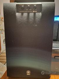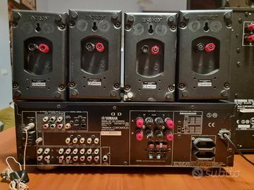 Impianto Surround Yamaha. NO SPEDIZIONE Specifiche tecniche da libretto: - Digital Sound Field Processor - Dolby Digital Decoder - Dolby Pro Logic Surround Decoder - CINEMA DSP: Theater-like Sound Experience by the Combination of Dolby Surround and YAMAHA DSP Technology - 6-Channel External Decoder Input for DTS and other future formats - Automatic Input Balance Control for Dolby Pro Logic Surround - Test Tone Generator for Easier Speaker Balance Adjustment - Speaker Output Mode Changing Capability - 40-Station Random Access Preset Tuning - Automatic Preset Tuning - Preset Station Shifting Capability (Preset Editing) - Video Signal Input/Output Capability - SLEEP Timer - Universal Remote Control Transmitter with Preset Manufacturer Codes