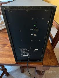 Vendo Yamaha subwoofer SW-P240 in buone condizioni funzionante Type: single driver Subwoofer Drive singolo Attivo Tipologia Altoparlante: cono 1 x 160mm Finiture: silver Dimensioni: 200 x 365 x 390mm Peso: 8.4kg Potenza: 50W Amplificazione attiva