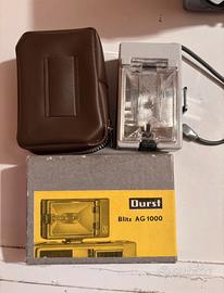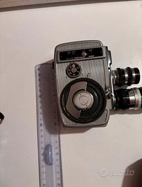 Yashica-8T 2 analogico per riprese in formato 8mm Double 8 mm con motore a molla prodotto in Giappone Obiettivi: Dotata di due lenti intercambiabili, una torretta girevole con due lenti: una da 13mm f/1.4 e una grandangolare da 6.5mm f/1.9. Accessori: Include un'impugnatura a pistola, un esposimetro e un faretto Durst Blitz AG 1000.Funzionamento: Completamente manuale, non richiede batterie per il motore, che va caricato manualmente Velocità: Permette di selezionare diverse velocità di scatto, tra cui 8, 12, 16 (standard) e 24 fotogrammi al secondo. Focus: Utilizza una messa a fuoco a zone per l'obiettivo da 13mm, mentre l'obiettivo grandangolare ha una messa a fuoco fissa. Flash per fotografia analogica * Include: Unità flash, custodia in pelle marrone e scatola originale