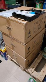 Completo di tripli imballi originali e accessori a corredo (telecomando, cavi di alimentazione, manuale).