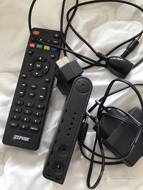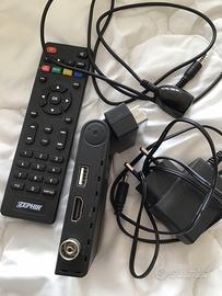 Pratico decoder presa scart pieghevole, da attaccare direttamente al retro Tv. In ottime condizioni, con accessori e telecomando con ancora le batterie inserite, ma senza scatola.