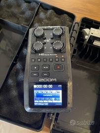 registratore multitraccia zoom H6, completo di custodia e accessori. (scheda SD non presente) Perfettamente funzionante. Purtroppo la gomma di rivestimento si è deteriorata, non ne compromette l'utilizzo ma consiglio di acquistare una custodia per una sensazione tattile migliore.