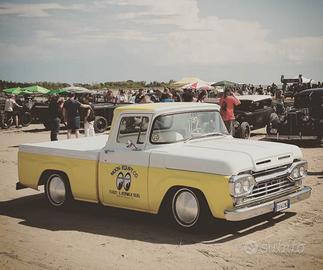 Vendo a malincuore causa malattia il mio pluripremiato Ford F100 Mooneyes del 1960. L'auto è perfetta, eseguito il restauro frameoff (sabbiato e verniciato il telaio, tirata la carrozzeria al metallo, nessun stucco presente) ed eseguita verniciatura totale; i loghi fatti a mano autorizzati da Mooneyes US, no decals; montato completo nuovo impianto frenante come nuovo pure l'impianto elettrico e la strumentazione fedele all'originale. Il motore ed il cambio sono i suoi originali, 4800 8V con tutti gli accessori Moon ( copri punterie e filtro aria in fusione di alluminio, cavi candele) e tre marce il cambio. Omologato a libretto 3 posti. Interni perfetti con cuciture Tuck'N roll vecchia scuola di tapezzeria esattamente come nel Ford che mr.Dean Moon guidava per portare il suo dragster alle gare in giro per gli Stati Uniti. Parte al primo colpo e non ti lascia mai a piedi. Altri dettagli volentieri al telefono. Sempre naturalmente in garage. Paga assicurazione ridotta veicoli storici