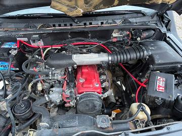 Motore 1.600 8v 82cv benzina, monta: -cerchi raptor4x4 con gomme stradali extreme 225/70 r15 rimarchiate a misura a libretto -assetto foux4 art extreme +3” con ammortizzatori posteriori +15 hm4x4 e bodylift + 5cm hm4x4 -paraurti anteriore e posteriore uso gravoso r4x4 -verricello xt da gara -snorkel xt -collettori di scarico hm4x4 con scarico completo -cinte servizi e distribuzione con 10000km -tutta la barra e testine di sterzo nuove appena montate - batteria nuova -super ridotte xt -baracchino -impianto stereo con radio bluetooth -impianto gpl (smontato) CEDO TUTTI I PEZZI ORIGINALI macchina con 180000km con carrozzeria rovinata per l uso in fuoristrada (alcune piccole bozze e sfigi), i componenti da fuoristrada hanno 10000km (quindi i restanti 170000km li ha fatti da originale). sarebbe da sostituire il servo freno. *non vengono fornite le gomme grandi*