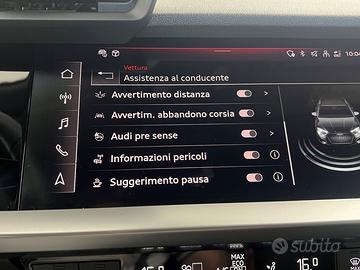 Equipaggiamento in dotazione : audi phone box, sond system, sedili ant riscaldabili, navigatore, cerchi da 17, bracciolo, cruise control adattivo, clima automatico bizona, illuminazione interna, bluetooth, specchietti riscaldabili e ripiegabili elettricamente, fari ant e post a led con frecce dinamiche, luci diurne a led, volante multifunzione, sistema di ausilio al parcheggio ant e post, audi virtual cockpit plus, radio dab, pre sense, sensore luci e pioggia, freno a mano elettromeccanico, mantenimento corsia, supporto lombare, connessione ios e android, supporto lombare.