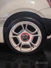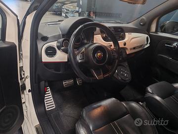 Vendo Abarth 500 C 595 cabrio, anno 2010, auto italiana, versione bicolore bianca e nera, cambio automatico, splendido abbinamento con sedili in pelle sportivi e cuciture a contrasto, cerchi bianco in lega da 17', cappotta nera.