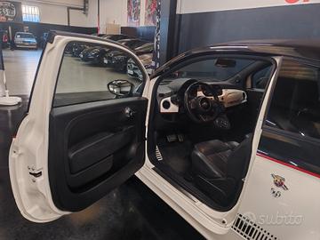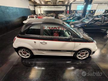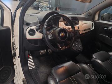 Vendo Abarth 500 C 595 cabrio, anno 2010, auto italiana, versione bicolore bianca e nera, cambio automatico, splendido abbinamento con sedili in pelle sportivi e cuciture a contrasto, cerchi bianco in lega da 17', cappotta nera.