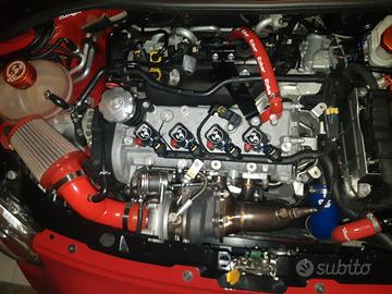 Aspirazione diretta alta, elimina decanter, iniettori 390cc, turbo TD04 girante avional, intercooler frontale, radiatore olio, kit completo GMC collettori cuore, linea scarico 63,5mm. Terminale Akrapovic omologato, frizione rinforzata volano monomassa ergal, pop off Bonalume, tappo carburante, olio, acqua e idroguida in alluminio.
