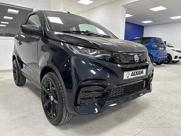 Alzavetri elettrico, chiusura centralizzata con telecomando, Tablet touch 7" con Bluetooth, retrocamera e sistema compatibile con Android/Apple car play, sensori retromarcia, , Impianto amplificazione audio Aixam Concert con 4 altoparlanti (2x370W di potenza massima), separatore sedili, lunotto termico, cerchi in lega da 15'', motore Kubota diesel 480 cc - 6 kw - Euro 5, interni neri e selleria in ecopelle nera, sedili ribaltabili.