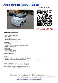 Modello: Aixam Minauto GT - Colore Bianco tetto nero - Anno 2016 - KM 37.000 km - Revisione in validità 24 mesi Dotazioni - Vetri elettrici - Chiusura centralizzata con radiocomando - Cerchi in lega da 14” - Autoradio - Sedili in stoffa - Motore Kubota Z402 Richiesta € 6.500 NOTE: - Portiere, cofano e interni in perfette condizioni - Motore e cambio in perfetto stato d'uso - Carrozzeria pari al nuovo, è appena stata riverniciata completamente Sono disponibili FOTO E VIDEO ( album fotografico Google ) inquadrando il QR- CODE presente nelle foto Per descrizioni e dettagli preferiamo contatto telefonico Possibilità di consegna e ritiro. Accettiamo permute o acquistiamo mini car Grecav, quadricicli con patentino AM Casalini minauto di qualsiasi genere e marchi , tipo minicar Aixam , micro car Ligier macchinine Chatenet Siamo un'officina / rivenditori e rispondiamo a voce in orari lavorativi mentre se gradite anche tramite WhatsApp. Per descrizioni e dettagli preferiamo contatto telefonico Orari apertura: Lunedì - Venerdì : 09.00/12,30 -14.30/18.30 Sabato : 09.00/12,30 ( su appuntamento ) Ci Emme srl via Bruno Buozzi, 16 40020 Casalfiumanese - ( BO ) Ufficio +39 0542 668085 Cellulare +39 370 3004909 ( anche per WhatsApp )