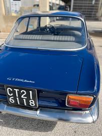 Alfa Romeo Giulia GT Junior 1.3 del 1969 completa, Scalino 'cruscotto con gobbe', usata quotidianamente e ben tenuta, con segni dell'età e meritevole di nuove attenzioni ma sempre divertente e in buone condizioni generali. Colore blu esterno e tabacco interno sono i colori originali (anche se in questo momento l'interno è sky grigio). Macchina mai modificata, solo 4 proprietari precedenti, codice motore e codice telaio corrispondono, targhe nere, libretto di circolazione originale a pagine, Certificato di Rilevanza Storica, in questo momento segna 66.000 km circa. Carrozzeria da rivedere, cruscotto da sostituire (500 euro da ditta specializzata), impianto frenante da rivedere, fondi da sostituire, telaio in perfette condizioni, volendo sostituire il rivestimento interni con ditta specializzata ho il codice e il campione del tessuto dell'epoca (circa 800 euro). Vendo per passaggio ad un altro progetto. Considero anche piccola permuta auto d'epoca. Prezzo leggermente trattabile dopo aver visto la macchina.