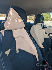 Sedili sportivi con logo SBK e finiture in carbon look.