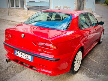 Vendo per poco utilizzo, e non permuto con nessun tipo di auto, Alfa 156 2.5 V6 24v del 1998 colore rosso Alfa 130. Serie speciale Pack Sport originale che comprende strumentazione rosso ambra, sedili Recaro ergonomici regolabili sia nella parte sotto le ginocchia che nei fianchetti laterali, consolle centrale in finto carbonio, molle sportive, volante e pomello in pelle.