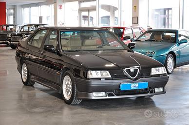 Alfa Romeo 164 3.0 V6 24V Q4, la massima espressione della berlina sportiva italiana prodotta in un ridottissimo numero di esemplari (1087 pezzi). Equipaggiata con la versione più potente del V6 "Busso" da 3 litri per 231 cv di potenza, sofisticata trazione integrale, cambio a 6 marce Getrag con rapporti ravvicinati (spettacolare alla guida), sospensioni sportive a controllo elettronico, cerchi in lega da 16 pollici e kit estetico specifici, rarissimi sedili Recaro riscaldabili con ampie regolazioni e memorie.
