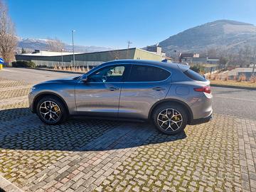 Alfa Romeo Stelvio Executive del 2019, motore 2.2 190 CV, cambio automatico a 8 rapporti e trazione integrale Q4, sistema di infotainment con schermo da 8.4 pollici, sensore anticollisione, frenata assistista, portellone elettrico, sensori di parcheggio, retrocamera, fari bi-xenon e luci diurne a led.