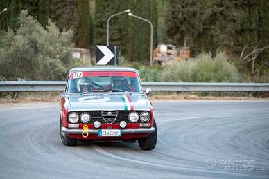 alfa romeo 2000 del 1972 da competizione HTP ed equipaggiamento aggiornato nel 2022 con impianto GPS, autobloccante 50%, omologata turismo di serie per rally salita e pista, appartenuta alla scuderia del Portello di Milano fino al 2021 ancora nella livrea della scuderia grigio metallizzato con fiancate rosse, ultima gara il 7/9/2025. nessun lavoro da fare.