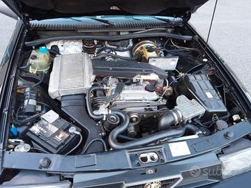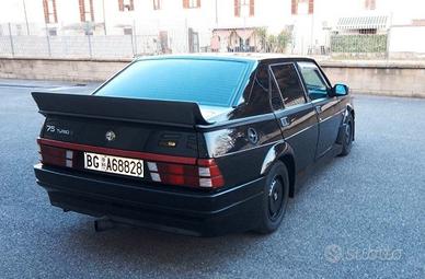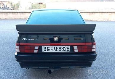 ALFA ROMEO 75 TURBO 1.8 QUADRIFOGLIO VERDE 162B1M del 1991 -Unico esemplare con Kit Evoluzione Balduzzi. Vettura di interesse collezionistico e storico con Certificato d’origine Alfa Romeo,essendo trentennale può usufruire di alcuni vantaggi come bollo, assicurazionee passaggio ridotto. Targhe bianche di prima immatricolazione, solamente 3proprietari precedenti, rimasta unico proprietario dal 1991 al 2018, semprecustodita maniacalmente, tutta originale e perfettamente funzionante. Accessoriatacon autoradio, cerchi in lega, autobloccante, servosterzo, pellicola scura suvetri, vetri elettrici, specchio retrovisore dx elettrico, chiavi doppie. Ancorada nuova montato dal noto preparatore Balduzzi il kit estetico della TurboEvoluzione, con spoiler anteriore e ala posteriore ripresi dalla versione IMSA,paraurti anteriore e posteriore modificati, minigonne laterali, passaruoteallargati. Fatta sempre da Balduzzi da nuova anche una preparazione stradalealla meccanica, il motore è stato potenziato a cv 220 circa con sostituzionealberi a cammes, nuova mappatura centralina, filtro aria modificato, scaricoracing, dischi freni anteriori baffati, assetto sportivo. Nel tempo è sempre stataseguita e tagliandata da Balduzzi. Nel 2020 fatto sostituzione scatola guida,pompa servosterzo, pompa frizione, revisione totale del cambio, pastiglie frenianteriori e tagliando completo. Vettura pubblicata con ampio servizio sullarivista Automobilismo d’Epoca del Gennaio 2021 per la particolarità e rarità dellavettura. Pronta per un uso immediato eda posto con la revisione biennale. Passaggio di proprietà escluso dal prezzo.