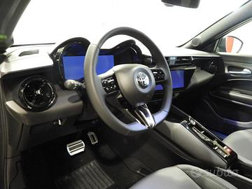 Sedili vinile e tessuto con reg. guidatore elettrica e massaggio a 6 vie e manuale passeggero, Alfa Connect Box Servizi Connessi Alfa Romeo: 10 anni Connect ONE & 3 anni Connect PLUS, Impianto Audio 6 altoparlanti Sistema, Infotainment con display da 10,25'' con navigazione, 2 porte USB, Bluetooth e comandi vocali, Quadro strumenti a cannocchiale da 12,3", Alzacristalli elettrici anteriori/posteriori Piano baule regolabile a 3 livelli, Avviamento motore senza chiave, Poggiatesta posteriore, Bracciolo anteriore regolabile con vano, Portellone posteriore ad apertura e chiusura elettrica con funzione hands free, Climatizzatore automatico, Selettore modalità di guida, Fari anabbaglianti a LED, Specchietti retrovisori esterni regolabili elettricamente, Palette del cambio al volante, Body kit nero opaco con dettagli Rosso Brera e Scudetto frontale a V "Progresso", Maniglie porte in tinta carrozzeria, Calotte specchietti retrovisori esterni nero lucido, Vetri posteriori oscurati, Fari posteriori a LED, Luci ambiente interne, Tasche schienale anteriori conducente/passeggero, Plafoniera anteriore e posteriore LED touch, Volante in pelle, Sedile posteriore abbattibile 60/40,Chiamata automatica d'emergenza, Lane centering e Traffic Jam Assist, Frenata automatica di emergenza con riconoscimento pedoni, Riconoscimento segnali stradali, Freno di stazionamento elettronico, Sensore pioggia per tergicristallo,Intelligent Adaptive Cruise Control, Sensori di parcheggio posteriori, Kit riparazione pneumatici Fix&Go, Telecamera posteriore con griglie dinamiche, Cerchi in lega da 18'' Fori, Pinze freno grigio anodizzate