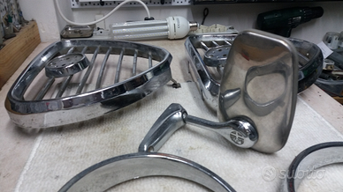 Sono disponibili ricambi usati in ottimo stato per alfa Romeo 2000 Berlina, mascherina in alluminio 28cm x 23cm euro 80 al pz, specchietto retrovisore 50 euro alfa Romeo Giulia 1300, sprovvisto delle due viti, anche per varie alfa Romeo,, coppia ghiere fari in alluminio con diametro misura interna di cm 15.5, prezzo 50 euro la coppia per Fiat 124 Special.