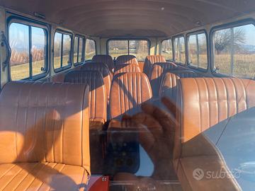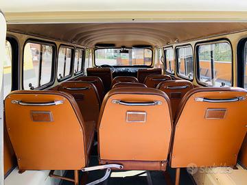 Vendo Alfa Romeo F12 carrozzato Colli 11 posti ( omologato 8 posti patente B ) prima serie prodotto alla fine del 1967, maching numbers , Colore Avorio AR 204 come da origine ( documentato da Automobilismo Storico Alfa Romeo ) , praticamente due proprietari, causa diverso tempo d’ inattività eseguiti importanti lavori quali : revisione impianto frenante compreso servofreno, revisione carburatore, sostituzione olio motore con filtro olio, convergenza pneumatici, sostituzione marmitta completa, sostituzione quattro Ammortizzatori, sostituzione cinghia dinamo , sostituzione testine sterzo, sostituzione candele,puntine e revisione impianto elettrico, revisionato in Motorizzazione e perfettamente funzionante. Eseguito restauro conservativo dal precedente proprietario che era un carrozziere ,guarnizioni porta nuove appena sostituite ,selleria rifatta a specifica con tessuti in pelle originali, imperiale(cielo)ancora originale di fabbrica, come pavimento in legno, trousse attrezzi completa e libretto uso & manutenzione di prima dotazione. Targa originale sostituita nel 1980 per cambio proprietà , ma con nuova legge possibilità di riavere la sua originale di prima immatricolazione.