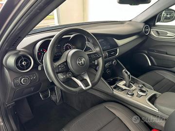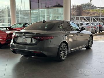 Sedili anteriori con 6 regolazioni manuali, Volante in pelle sportivo, Batticalcagno in alluminio, Rivestimento Leva Cambio in Pelle Sportiva, Climatizzatore Automatico Bizona, Alfa Romeo Connected Services, Light body cover (copertura di trasporto), Pedaliera Sportiva In Alluminio, Kit Riparazione Pneumatici, Finiture esterni Dark miron su calandra, terminali di scarico, logo Giulia, Inserti in alluminio su plancia, tunnel centrale e pannelli porta, Apertura/chiusura centralizzata con telecomando, Alfa Connect 8.8" Multitouch, Quadro strumenti con display TFT a colori da 7", Sintonizzatore Radio DAB, Cerchi in lega da 18" a turbina con pneumatici Ant: 225/45 e Post: 255/40, Apple CarPlay / Android Auto, Pinze freno nere, Specchi retrovisori esterni ripiegabili elettricamente, Doppio terminale di scarico cromato, Fari anteriori Bi-Xenon 25W, Proiettori Anteriori Bi-Xenon da 25W, Lavafari, Fari posteriori LED, Interni in techno pelle/tessuto nero, Pack Parking Assistance, TPMS (Sensore pressione pneumatici), Specchio Retrovisore Interno Elettrocromico, Integrated Brake System (IBS), Disattivazione air bag passeggero, Autonomous Emergency Brake (AEB), Forward Collision Warning (FWC), Adaptive Cruise Control (ACC), Sensori Di Parcheggio Posteriori, Telecamera posteriore con griglie dinamiche di ausilio al parcheggio, Sensore pioggia per tergicristallo, Alfa DNA Drive Mode System, Sedile posteriore abbattibile 40/20/40 con poggiabraccio integrato, Vetri ad isolamento acustico, Palette cambio al volante in alluminio, Coprimozzo Alfa Romeo bianco e nero, Alfa Connect 3D Nav 8.8" Multitouch, Wireless charger, Pinze freno rosse, Specchi retrovisori esterni elettrocromici, Ambiente Nero, Driver Attention Assist, Highway Assist System, Active Blind Spot Monitoring (BSM) con cross path detection, Traffic Sign Recognition (TSR), Intelligent Speed Control, Lane Keep Assist, Sensori di parcheggio anteriori, Cristalli posteriori oscurati, ABS,