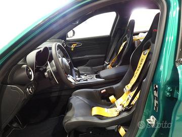 Sedili sportivi Sabelt in fibra di carbonio con Logo GTAm ricamato sul poggiatesta e cruscotto, Cuciture colorate verdi, Interni completamente rivestiti in AlcantaraTM (Cruscotto, cielo, pannelli porta, bracciolo), Vetri posteriori oscurati, Infotainment touch screen da 8,8" (3D Nav,DAB), Tetto in fibra di carbonio, Nuovo frontale in fibra di carbonio, Cerchi a 5 fori monodado da 20" con calliper Gialle con pneumatici 265/30 R20 anteriori e 295/30 R20 posteriori, Dischi freno carboceramici, Dettagli interni in fibra di carbonio opaca, Nuovo diffusore posteriore in fibra di carbonio, Scarico centrale Akrapovic, DNA Pro con modalità RACE, HMI GTA specifica con funzione Launch Control, Vernice esterna specifica Verde Montreal, Roll bar colorato verde