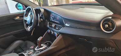 ALLESTIMENTO FANTASTICO : Pack Sedili Elettrici Quadrifoglio \ Scarico Akrapovic in fibra di carbonio /Volante sportivo Q in pelle e alcantara con inserto in carbon/Cerchi in lega da 19'' a 5 fori bruniti/Dischi freno carboceramici /Pinze freno gialle/Sistema audio Hi-Fi subwoofer 900W HARMAN KARDON /tetto e calotte carbonio vedi dettagli e foto su officinecaruso.com (60 foto , video , lista optionals ufficiale casamadre )