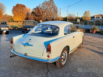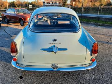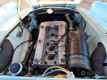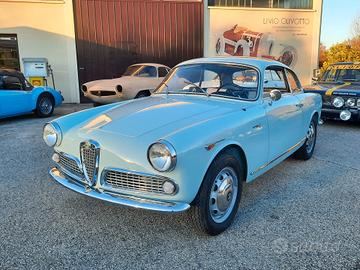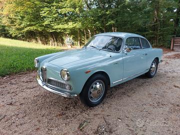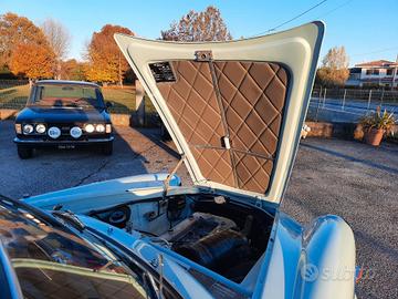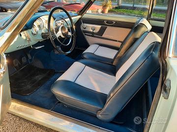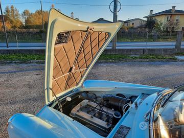 Alfa Romeo Giulietta 1300 Sprint del 1959, colore celeste e selleria di colore blue e grigio, probabilmente del più bel abbinamento colori per questo modello di Alfa Romeo disegnato da Bertone. Che dire dell' auto? Secondo me parla da sola, eleganza, sobrietà nelle linee ma così decise la la rendono unica, e poi, la meccanica, non ci sono paragoni con i modelli successivi, l' emozione che ti trasmette, mentre sei alla guida sono ineguagliabili, o semplicemente, mi piace molto, e non riesco a trovargli difetti. Linea Fantastica, ottimo comportamento su strada, confort più che buono, dato che stiamo parlando di una coupè e soprattutto degli anni '50, dove l' auto doveva solo essere un oggetto da mettere in bella mostra, e tutto il resto veniva messo in un secondo piano, non per nulla, erano nate versione, almeno per altre case automobilistiche, come le OTS per le Jaguar o le Speedster per le Porsche, dove si puntava molto al costo, dovevano costare poco, ma ma avere il minimo, e quel minimo è bastato per renderle uniche e molto apprezzate all' epoca, e soprattutto ora. Come sempre, la semplicità premia, e non per niente, la linea della Giulietta Sprint resta sempre tra le mie preferite, semplicissima, ma come detto poco fa, decisa, infatti, è impossibile non riconoscerla già al primo sguardo, anche quando la si vede sbucare in lontananza. Perchè comprare questa Alfa Romeo Giulietta Sprint 1300? Perchè è stata restaurata tutta, rispettando le caratteristiche originali, e soprattutto, smontando ogni singolo pezzo, ripulendo la scocca per bene, per poi eseguire quei piccoli interventi di carrozzeria che aveva e che sono stati meticolosamente riparati per poi essere stata riverniciata a nuovo dentro e fuori, sotto e sopra, idem per la meccanica, le cromature e gli interni. Il motore è stato revisionato a nuovo e corrisponde, è il suo AR 00102, tutta la strumentazione è in km, anche se era stata importata dagli Stati uniti, dalla costa ovest, per la precisione. Al momento