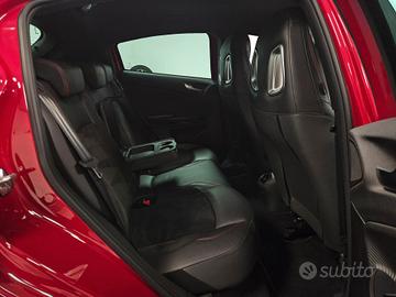 Vano portaoggetti refrigerato, Sedile lato guida regolabile in altezza, Sedile passeggero regolabile in altezza, Sedile posteriore ribaltabile sdoppiato, Sedili sportivi in pelle e alcantara con poggiatesta integrato e cuciture rosse, Volante sportivo-tagliato multifunzione in pelle con cuciture rosse, Batticalcagno in alluminio, Tappetini in tessuto neri, Alfa dual zone automatic climate control, Bocchetta climatizzazione sedili posteriori, Pedaliera Sportiva In Alluminio, Sedili anteriori con tasca portoggetti sul retro, Sedili posteriori con terzo poggiatesta e bracciolo con carico passante, Servizi Live U-Connect, Sterzo attivo Dual Pinion, Comandi cambio al volante (solo in abbinamento con cambio automatico Alfa TCT), Cornice cristalli esterni nera, Maniglie porte anteriori con trattamento nero, Alette parasole anteriori con specchio e illuminazione, Assetto sportivo ribassato, Uconnect 5" Radio (Display Touch Screen a colori da 5", Lettore CD / Mp3, USB, AUXin, Vivavoce bluetooth, Comandi vocali),