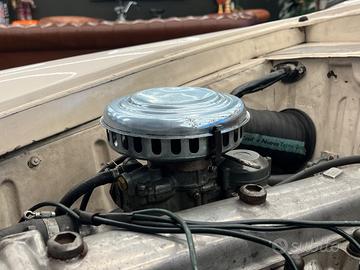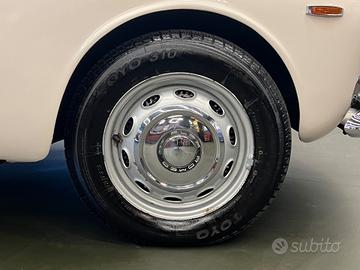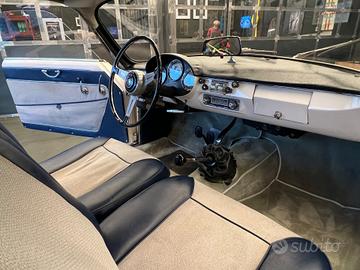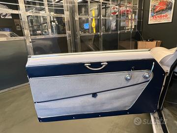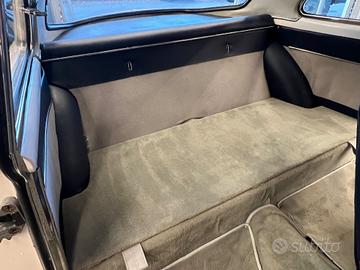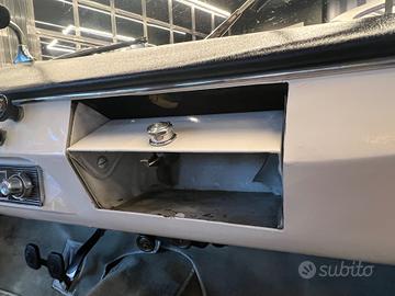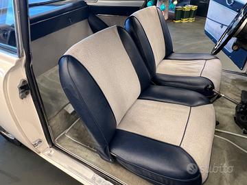 Rifinita in Bianco IBIS dal 1990 ( in sostituzione All'origianle azzuroIseo) mantiene gli inetrni nel suo schema originale di misto tessuto e pelle grigio /Blu ed il volante in bachelite a 3 razze .