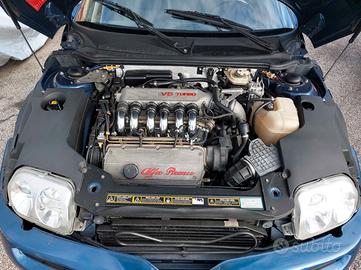 Alfa Romeo GTV 2000 V 6 "Busso" Coupè Turbo del 1997, colore blue met. e selleria di color grigio, con la parte centrale in tessuto, km 84500 da nuova, mantenuta molto bene, sia dentro, che fuori, regolarmente in uso, meccanicamente ottima, e poi, il sei cilindri fa la differenza, anche se solo 2000 cc, il suono è decisamente diverso rispetto al 4 cilindri in linea, ed il turbo la rende più aggressiva rispetto alla versione 3000 cc. Che dire, venite a vederla qui a Roncade, Treviso