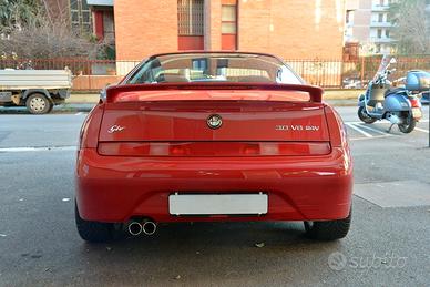 Macchina DA CONCORSO, esattamente pari all'uscita dalla fabbrica, per amatori e collezionisti, con SOLI 25.000km certificati, motorizzazione V6 Busso da 220CV. L'esterno, in classico colore rosso Alfa, è caratterizzato dallo spoiler posteriore Zender con terzo stop (una rarità) e dai cerchi Teledial da 17" originali riportati a libretto. Al momento monta pneumatici Good Year Eagle F1 dell'epoca, per la massima rispondenza al pacchetto originario, e sarà comunque consegnata con pneumatici Pirelli PZero nuovi.