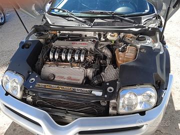 Porta targhe anteriore di sistemare, pulsante quattro frecce, copri cassa sportello guida, stemmi anteriore e posteriore scoloriti (quelli in foto sono non originali), ruotino da sistemare, termostato (70 euro), va fatta una mappatura seria, sul busso v6 turbo il migliore in assoluto è Officina Falessi, Terni. Dispongo di motore intero compreso cambio, due trasmettitori di velocità (uno da montare), due turbine, una sicuramente perfettamente funzionante ma sostituita da me, con altra, attualmente montata sulla macchina, leggermente più grande.