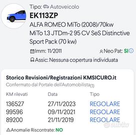 Alfa Mito 1.3 JTDm del Nov/ 2011.