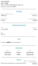 Vendesi Alfa Romeo Mito del 2018. Si consegna tagliandata e revisionata.