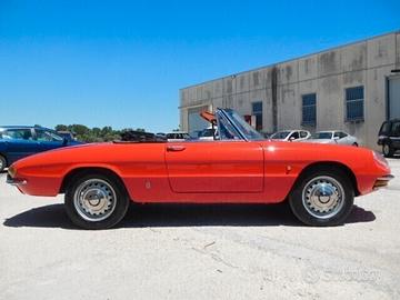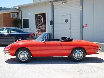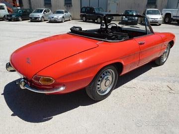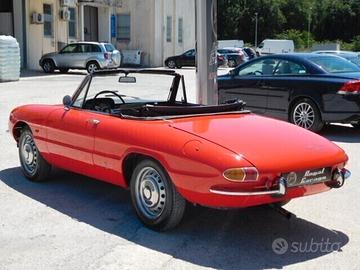 ALFA ROMEO SPIDER 1.6 DUETTO OSSO DI SEPPIA -ASI CRS -ANNO DI PRODUZIONE 07\1967 -CV109\KW80 -VETTURA PRODOTTA PER IL MERCATO STATUNITENSE, IMMATRICOLATA NEL 12\1967 A NEW YORK , IMPORTATA IN ITALIA NEL 1991 ,RESTAURATA 30 ANNI FA AD OGGI SI PRESENTA IN DISCRETE CONDIZIONI ,USABILE COSÌ MA NON PERFETTA ,MECCANICA IN ORDINE ,MOTORE CON ALL ATTIVO KM5.000, 1.600 CON SIGLA AR00502 NON CORRISPONDENTE ALL'ORIGINE CHE DEVE ESSERE AR00536 -MATCHING COLOR , COLORE ROSSO ALFA ROMEO ED INTERNI IN PELLE SKAI NERI CON MOQUETTE NERE -VETTURA DA IMMATRICOLARE CON DOCUMENTI AMERICANI GIA SDOGANATI , ASI CRS DISPONIBILI -