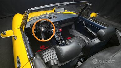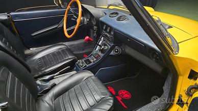 Bellissima Alfa Romeo Spider 2.0 cc Veloce serie codatronca, anno 1982, certificata ASI con C.R.S. la stressa rappresenta una roadster di lusso prodotta dalla Alfa Romeo per affermare l’inconfutabile supremazia tecnica. Sicuramente elegante e sportiva, la “serie codatronca” del suo colore “A.R. giallo ginestra” affascina per le sue linee intramontabili, le proporzioni classiche da roadster e il suo design iconico, negli interni come negli esterni, indossando un motore capace di erogare fino a 128 CV circa. Il piacere con una Spider non ha fine, ogni particolare della Alfa Romeo Spider crea la giusta combinazione tra sportività ed eleganza. Il design dell’abitacolo si sviluppa intorno al conducente per offrire un piacere di guida senza compromessi. La vettura che proponiamo è un oggetto che presenta tutto quello che un appassionato di auto storiche ed ancor più Alfa Romeo ricerca in una vettura. La sua linea evoca eleganza e spensieratezza, è talmente bella che ovunque si vada con lei, si viene accompagnati da sorrisi e sguardi di ammirazione. Questa Alfa Romeo è stata pensata espressamente per godersi la guida a cielo aperto, la stessa è completa di certificazione ASI e di certificato delle caratteristiche tecniche del veicolo. Possedere un’automobile con un notevole valore storico come quello che ha una vettura di questo genere, può essere davvero un sogno che si realizza: ed essere proprietari di una Alfa Spider lo è. La vettura , appartenuta solo ad un proprietario, immatricolata nel 1982 , splendida, omologata 2+2 quindi 4 comodi posti, ASI con C.R.S. usufruisce di tutte le agevolazioni fiscali e assicurative vigenti, corredata di originali interni in pelle di colore nero, autoradio, HARD TOP, soft top nuovo di colore nero, doppie chiavi, copri soft top originale, libretti uso e manutenzione, fantastici cerchi in lega da intenditori, auto matching numbers tutto corrispondente all’originale, la vettura presenta solo 63.000 km circa da nuova ed il suono vellutato