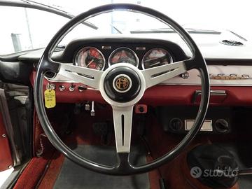 Sedili e pannelli in pelle Cartier, Moquette in lana rossa al pavimento, Vetri elettrici, Specchio esterno lato guida cromato, erchi in ferro con canale rovesciato con calotta Alfa Romeo cromata con pneumatici Michelin 165/400