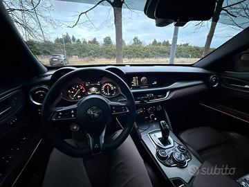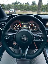 Alfa Romeo Stelvio 2.2 210 cv Q4 blu Montecarlo allestimento veloce con aggiornamento my 2023, passaruota maggiorati, loghi gta scuri originali, volante quadrifoglio con tasto accensione in vetro e riscaldabile, optional in carbonio interno abitacolo, sedili sportivi in pelle marrone traforati e riscaldabili elettrici con memorie, cielo nero, pedaliera sportiva, tappetini originali in gomma in abitacolo e bagagliaio, apple CarPlay e android auto, fari led con lavafari, abbaglianti automatici, cruise control adattivo, vetri privacy, pack led ambient. Auto usata solo in autostrada per lavoro, motore sostituito a luglio con uno rigenerato e garantito, manutenzione scrupolosa (ogni fattura delle manutenzioni è in mio possesso), cerchi da 20, pneumatici all'80%. Nessun graffio, interno immacolato e meccanica in ordine. Vendo per passaggio a coupè.