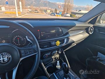 Alfa Romeo Stelvio Executive del 2019, motore 2.2 190 CV, cambio automatico a 8 rapporti e trazione integrale Q4, sistema di infotainment con schermo da 8.4 pollici, sensore anticollisione, frenata assistista, portellone elettrico, sensori di parcheggio, retrocamera, fari bi-xenon e luci diurne a led.